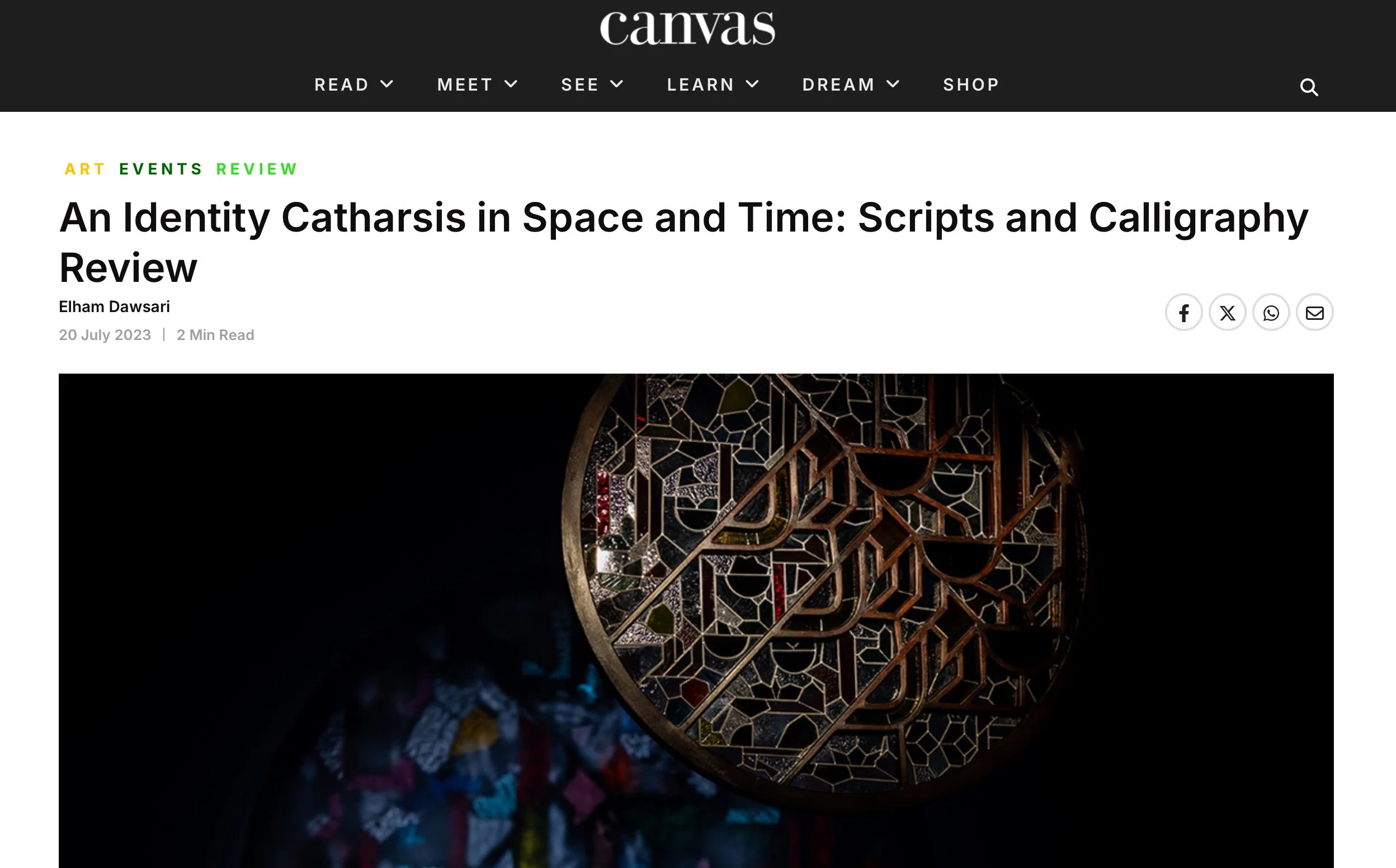 An art review written by Dawsari for Canvas magazine’s Summer 2023 edition, on the 2nd edition of “Scripts and Calligraphy”, an art exhibition held by the Saudi Ministry of Culture in 2023.